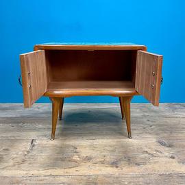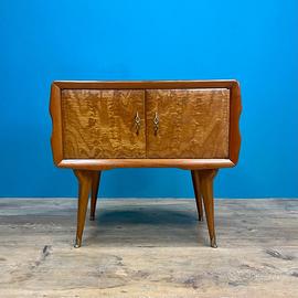 Coppia di comodini midcentury in stile scandinavo a due ante. Realizzati in Italia negli anni 50/60 Pannellature in radica di pioppo e telaio in frassino massiccio Piano in vetro molato con decorazione a carta optical Maniglie e piedini in ottone Mobili eleganti e dall’ottimo design, linee pulite e moderne Recentemente restaurati presso i nostri laboratori Sani solidi e robusti, piccoli segni del tempo. Le misure sono: H 62 larghezza 68 profondità 36 Spediamo su bancale in tutta Italia con imballaggio professionale. NELLE MIE INSERZIONI C'E' ANCHE LA CASSETTIERA ABBINATA