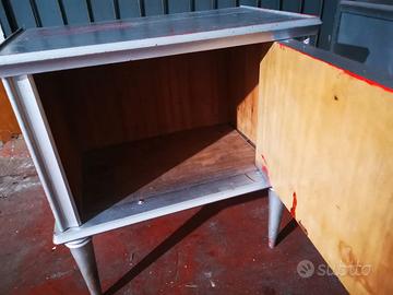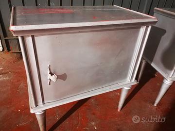 Coppia di comodini anni '50 dipinti di argento. Andrebbero solo ripitturati (anche con bomboletta) nella parte superiore e nelle gambe. € 15,00 la coppia Roma Nord zona Trionfale Ritiro in loco, non si spediscono.