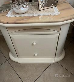 Vendo coppia di comodini e cassettiera come in foto. Colore bianco, superfice di marmo. Ritiro al secondo piano.