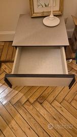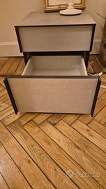 Coppia di 2 comodini Flou, colore grigio e nero nella iconica finitura effetto tessuto. Dimensioni 46, 41, 47. Chiusura soft close