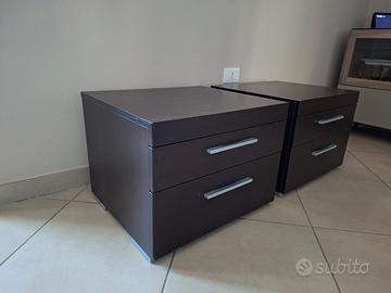 Coppia di comodini in ottimo stato. Legno marrone scuro. Materiale solido e strutturato. Non presentano graffi o danni di alcun genere.