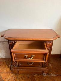 Vendo coppia di comodini in legno stile classico, eleganti e robusti, con 3 cassetti ciascuno e maniglie in ottone.