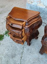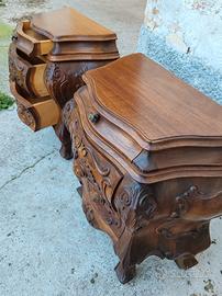 Vendo una bella coppia di comodini in stile barocco con due cassetti grandi e un piccolo tutto legno massiccio misura 60x35 alti 62
