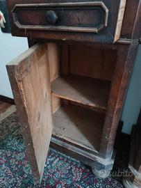 Elegante coppia di comodini d’epoca in abete con piallaccio in NOCE. Pezzi originali dal fascino senza tempo. Perfetti per chi ama l’arredamento classico o vintage. Da restaurare. Trasporto a carico dell’acquirente. Valuto offerte serie.