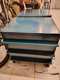 Coppia di Comodini laccati blu con 3 cassetti. Profondità 49.5cm Larghezza 54.8cm Altezza 58cm