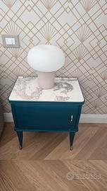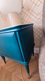 vendo coppia di comodini in legno massello e laccati in color ottanio e piano in gres effetto marmo.