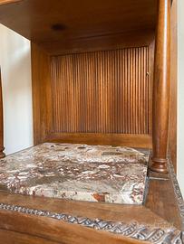 Uno dei due comodini è privo del pomello originale, facilmente sostituibile o lasciato così per chi apprezza la patina autentica del mobile.