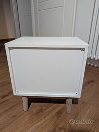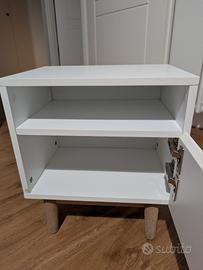 Coppia di comodini Maison du Monde bianchi con piedini in legno naturale. Misure: