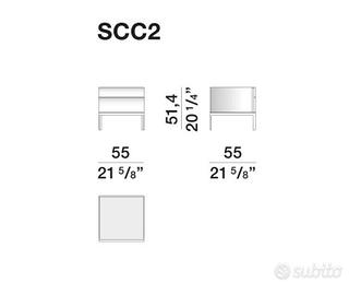 Vendo n. 2 comodini marca Molteni&C, modello 606, finitura facciata: laccato opaco colore silice,finitura top: vetro acidato silice, finitura distanziale: laccato opaco silice, finitura cavalletto cromo nero, finitura interno cassetti: nobilitato grigio saffiano. Dimensioni: L 55cm x P 55 cm x H 51,4 cm. Ottimo stato.