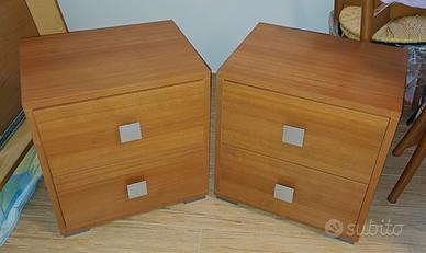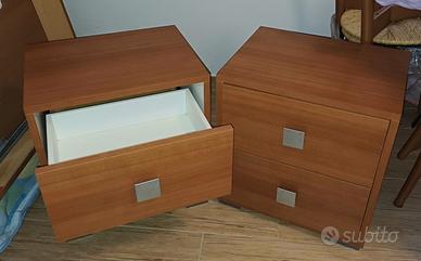 Vendo coppia di comodini color noce. Mis: P 0,35cmx L 0,45cmx H 0,48cm. Praticamente nuovi. 2 cassetti.