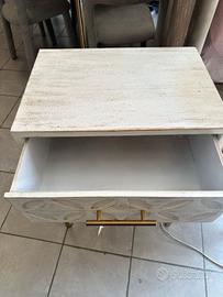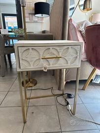 Coppia di comodini shabby l'arte di nacchi nuovi con cartellino. Struttura metallo colore oro, cassetti sbiancati con decoraione frontale e maniglia sempre oro. H 70 L 50 P 36 PREZZO DA INTENDERSI PER IL SINGOLO COMODINO, LA COPPIA VIENE 200€ Possibile ritiro a Cercola presso il nostro negozio oppure spediamo in tutta italia, prezzo da concordare per la spedizione. Ci troviamo in Via Don Minzoni 26 Cercola, essendo prodotti al momento non presenti nel negozio, per il ritiro si prega di fissare appuntamento. Per maggiori informazioni contatta lo 0813412774