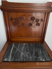 Splendida coppia di comodino in stile Liberty con decorazioni floreali intagliate e base in marmo grigio, risalente ai primi del XX sec.