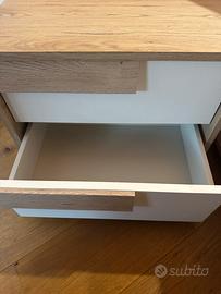 Coppia di comodini Nuovi, mai usati. Color bianco e legno naturale, due cassetti spaziosi. misure 54*41*41