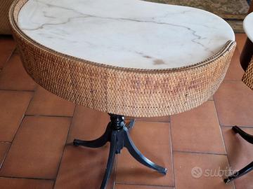 Coppia di comodini vintage con piano in marmo e parte posteriore intrecciata, muniti di cassetto Altezza 63 cm, larghezza 56 cm No spedizione, solo consegna a mano