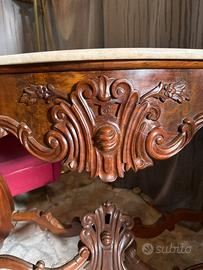 • Piano: Piano originale in marmo sagomato di alto spessore, con profilo a becco di civetta, che segue perfettamente la linea mossa del mobile.