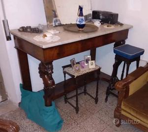 Vendo coppia di consolle in legno antico scolpito con top in marmo.