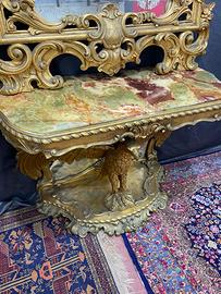 Coppia di consolle in legno dorato con piano in marmo onice misurano 120x55 ed hanno un’altezza di 275cm