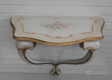 Cod. MOVA053 Coppia di piccole consolle sospese veneziane in legno Il prezzo è inteso a coppia Dimensioni: Lunghezza: 290 mm Larghezza: 510 mm Altezza: 540 mm