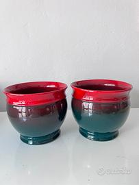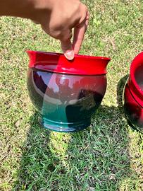 Coppia di copri vasi verde e rosso.
