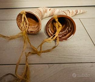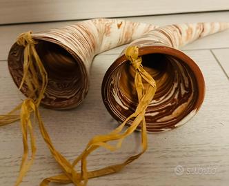 Aggiungi un tocco di carattere e mistero al tuo arredamento con questa coppia di sculture a forma di corno. Non sono semplici oggetti, ma veri e propri pezzi da esposizione che catturano l'attenzione.