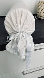 Coppia di cuscini " a caramella " con rivestimento in cotone bianco, pizzo sangallo e nastro di raso fatti a mano Sfoderabili