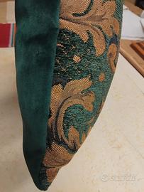 2 cuscini arredo verde e corallo/aragosta versione double face sono nuovi completo di imbottitura tessuto da tappezzeria swaffer