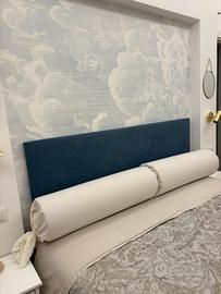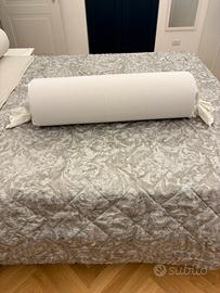Coppia di cuscini cilindrici in gommapiuma con federa in cotone bianco con chiusura a caramella. Ogni cuscino misura 80x23,5cm.