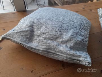 Coppia di cuscini decorativi con una texture particolare. - Tessuto morbido al tatto. - Colore grigio chiaro. - Ideali per divani o poltrone.