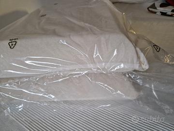 Due guanciali per letto ancora sigillati nella loro confezione originale. Provengono da un negozio specializzato di produzione artigianale ( per questo non riportano etichette). Il materiale è morbido e confortevole. Nuovi, massima igiene. Dimensioni standard: 73 X 43 X 8 circa. Forma classica a saponetta. Consegna a mano zona Mantova e limitrofi.