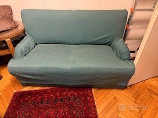 Coppia di divani con imbottitura in piuma naturale e gomma piuma, tappezzeria in stoffa. Dim. 180 x 80 cm