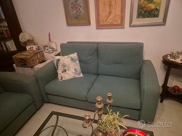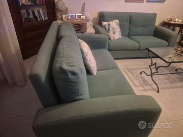 vendo per cambio arredamento , coppia di divani da due posti in velluto color verde mare . 100 euro a divano. non spedisco..ritiro in zona.
