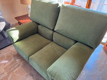 Coppia di divani artigianali in tessuto / vellutino da due posti, sfoderabili, uno verde salvia e uno grigio / lilla, in ottime condizioni. Divano vendibile separatamente a 250 euro, 400 euro la coppia. Ritiro a Padova Misure: Larghezza 150 cm Profondità 100 cm Altezza 105 cm