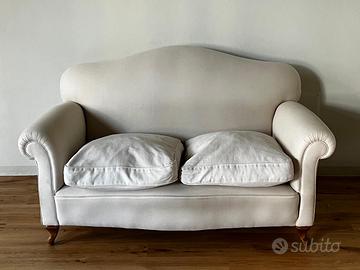 Divani in ottimo stato. Rivestimento in cotone e lino eventualmente da rinfrescare, ma privi di segni di usura. Disponibili anche coperture per testata e braccioli nel medesimo tessuto.