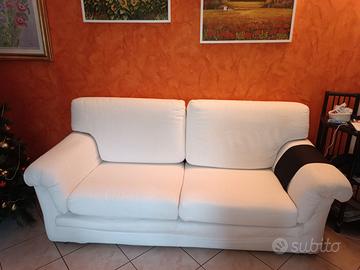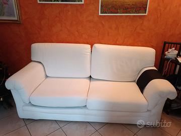Vendo coppia di divani color avorio. Un divano 3 posti misura: 200 cm larghezza e 90 cm profondità (seduta larga 145 cm e profonda 50 cm); divano a 2 posti misura 165 cm di larghezza e 86 cm di profondità ( seduta larga 106 cm e profonda 50 cm). Ritiro e trasporto a carico dell'acquirente.