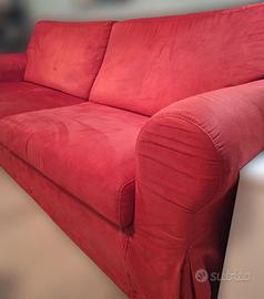 Vendo coppia di divani, anche separatamente, tessuto in alcantara colore rosso, completamente sfoderabile con cerniere e lavabile in lavatrice. Perfette condizioni come da foto, nessun danno ai tessuti e alla struttura. Trasporto a carico dell'acquirente.