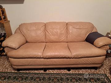 Vendo coppia di divani coordinati in vera pelle, colore beige/cuoio chiaro, composta da: