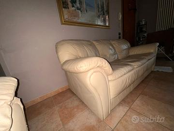 Vendo due divani in pelle beige, uno 2 posti e uno 3 posti, come da foto.