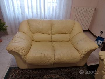 Vendesi coppia di divani in pelle di cui il piccolo con piccola lacerazione riparabile. Ritiro a mano