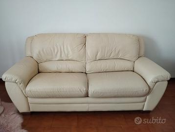 Vendo coppia di divani in pelle color panna, uno due posti e l’altro tre posti con letto incorporato a una piazza e mezza, estraibile rimuovendo la seduta (che è removibile anche su quello in versione due posti)