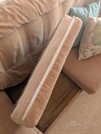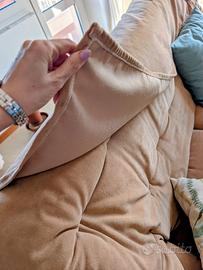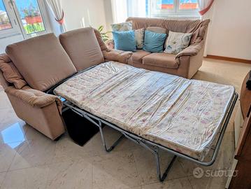 Vendo coppia di divani coordinati di pregiata fattura artigianale, molto ben conservati. Entrambi i divani sono dotati di un pratico meccanismo divano letto interno, ideale per ottimizzare lo spazio e ospitare persone. Caratteristiche principali: Materiale: Rivestimento in morbida microfibra color sabbia/beige, tessuto resistente, anallergico e facile da tenere pulito. Doppia Funzionalità: Entrambi i divani includono rete e materasso. Dimensioni di ogni divano: 170 cm (L) x 76 cm (P) x 85 cm (H). Stato di conservazione: Eccellente. La parte dello schienale dove appoggia la testa è stata sempre protetta da una striscia di tessuto supplementare, quindi la microfibra originale è pari al nuovo. Praticità: Cuscini delle sedute completamente sfoderabili con cerniera. Condizioni e Dettagli: Meccanismi letto fluidi e perfettamente funzionanti. Materassi in ottimo stato, usati un paio di volte, ancora con cellophane protettivo. Prezzo: 300€ per la coppia. Nota: Cuscini decorativi (azzurri/fiori) esclusi dalla vendita. Ritiro: A carico dell'acquirente. Zona: Genova Quarto Disponibile per visione per constatare la qualità della struttura artigianale e lo stato impeccabile del tessuto.