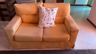 Coppia di divani color giallo ocra 3 posti e 2 posti, semisfoderabili. Marca Chateaux d’Ax. No spedizione, ritiro in loco.