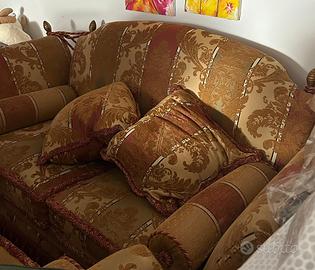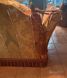 Coppia di divani con tappezzeria damascata nuovissimi in stile antico in legno pregiato