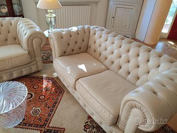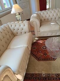 Coppia di divani Chesterfield a due posti in pelle beige marca Nicoletti.