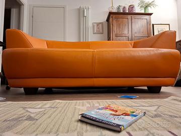 Vendo, causa cambio arredamento, coppia di divani in ecopelle colore arancione. Divani tenuti molto bene, puliti, senza macchie. Divani 2 posti. Prezzo riferito a divano. Misure profondità 90cm lunghezza 170cm altezza schienale 68cm altezza seduta 40cm vero affare!