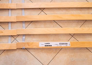 Coppia di doghe IKEA Luroy, ciascuna di dimensioni cm 80x200, in legno, per letto matrimoniale. Il prezzo si intende per entrambe le doghe (9 euro l'una). Facilmente trasportabili perché ripiegabili. Non spedisco.