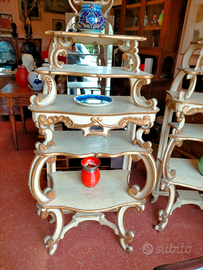 Coppia di etager lacca bianca e oro antichi