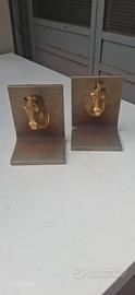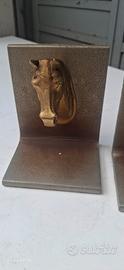 Elegante Fermalibri per libreria scultoreo con una testa di cavallo in bronzo.