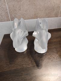 Coppia di fermalibri vintage Lalique a forma di "testa di ariete"modello "Aries"marcati Lalique.Condizioni eccellenti. Misure circa L. 20x H. 15 cm . Peso 3,2kg l' uno.