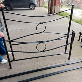 Coppia di giro letto da una piazza e mezza. In ferro nero opaco. Buono stato. Né è stato fotografato solo un per praticità, l'altro giro letto è uguale a quello che si vede.