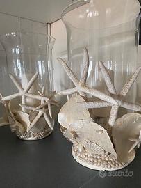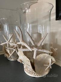Raffinatissimi vasi porta candele, importanti, tempestati di conchiglie, stelle marine e madreperla, artigianali di Arcarosa Porto Cervo. Vendo in coppia. Super occasione. Consegna a mano su Milano.